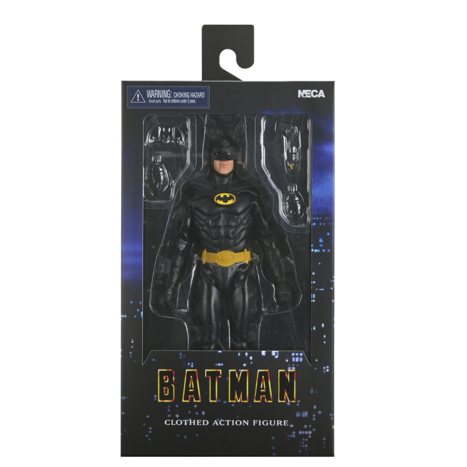 Diese detailreiche Batman-Actionfigur basiert auf dem legendären Auftritt von Michael Keaton im Film Batman (1989). Mit echtem Stoffumhang (Cloth Cape), filmgetreuem Sculpt und ikonischem gelbem Fledermaus-Emblem bringt diese Figur echtes 80er-Nostalgie-Feeling in jede Sammlung.