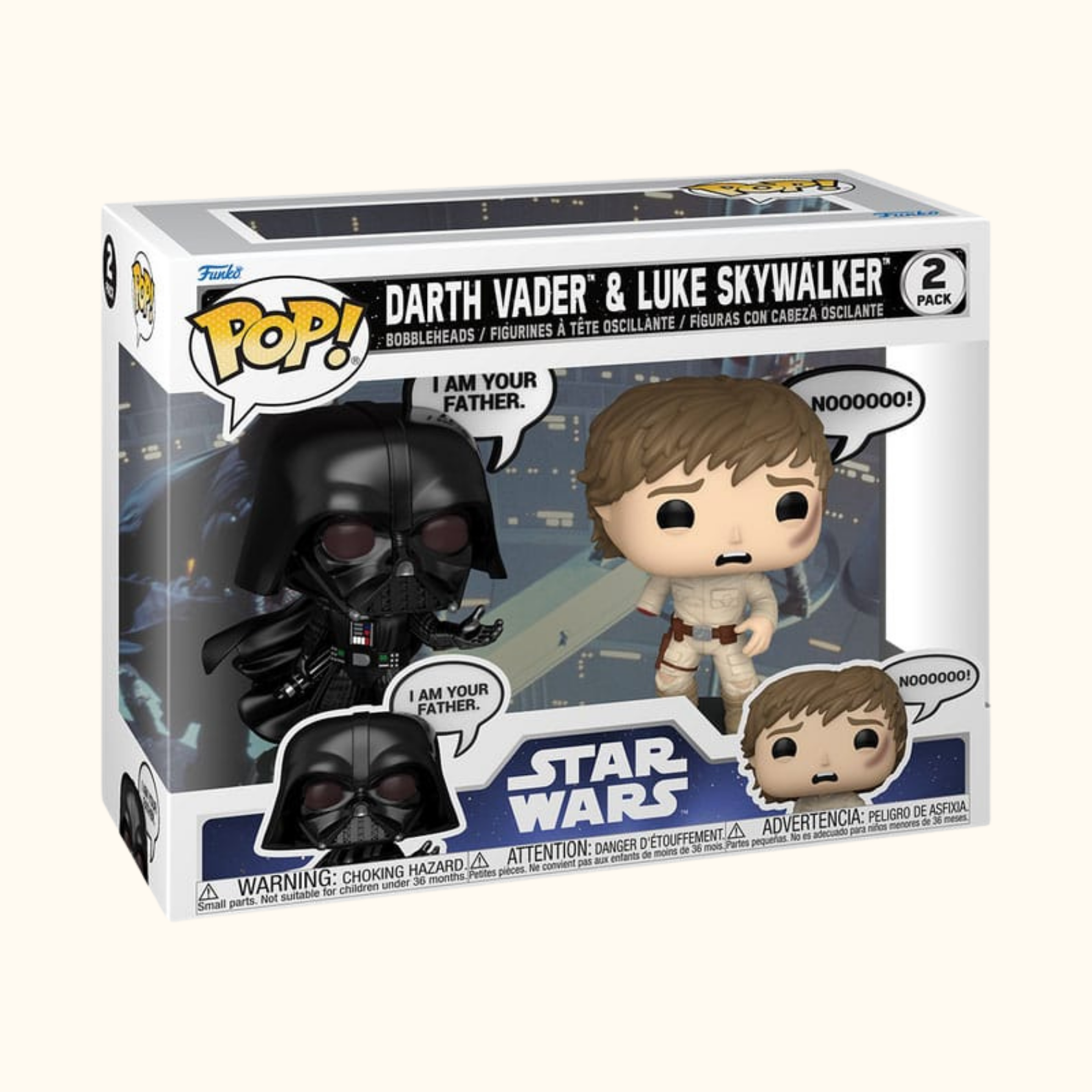 Zwei Legenden. Eine Szene. Das Funko POP! Sayings 2er-Pack bringt Darth Vader und Luke Skywalker als ca. 9 cm große Vinylfiguren direkt aus der wohl berühmtesten Star Wars-Momentaufnahme in dein Regal! Verpackt in einer dekorativen Fensterbox mit aufgedrucktem Spruch-Banner – ideal für Sammler & Filmfans.