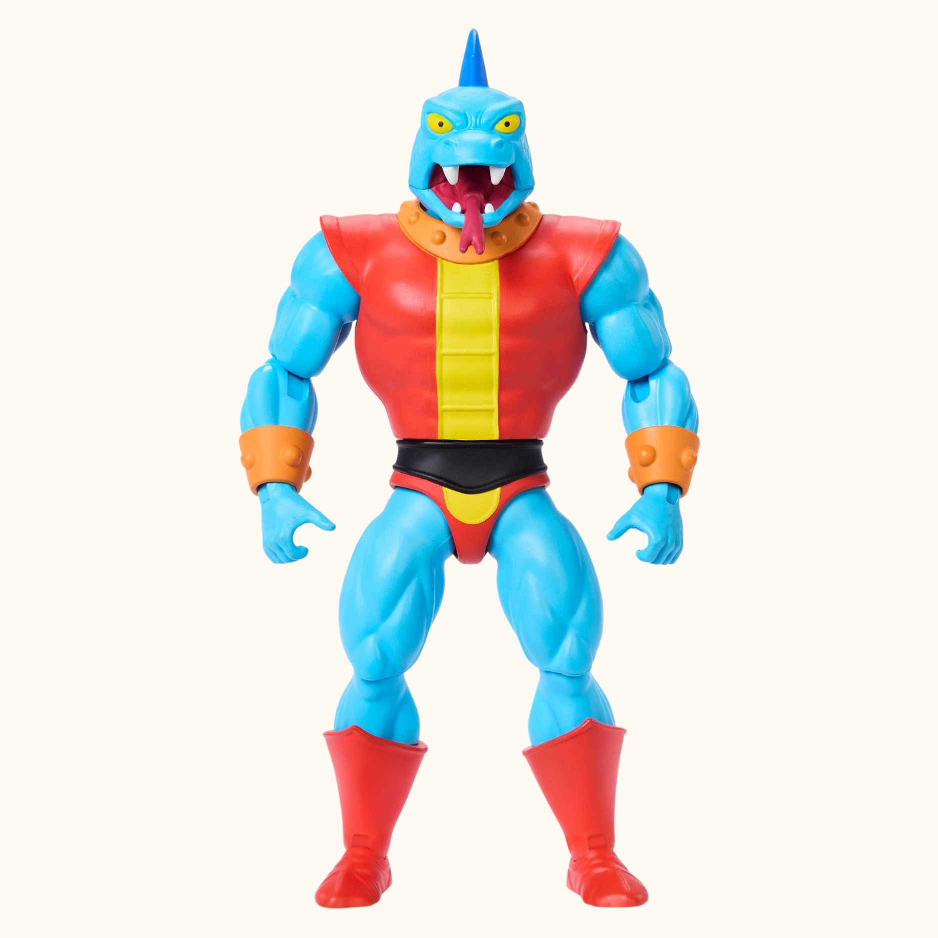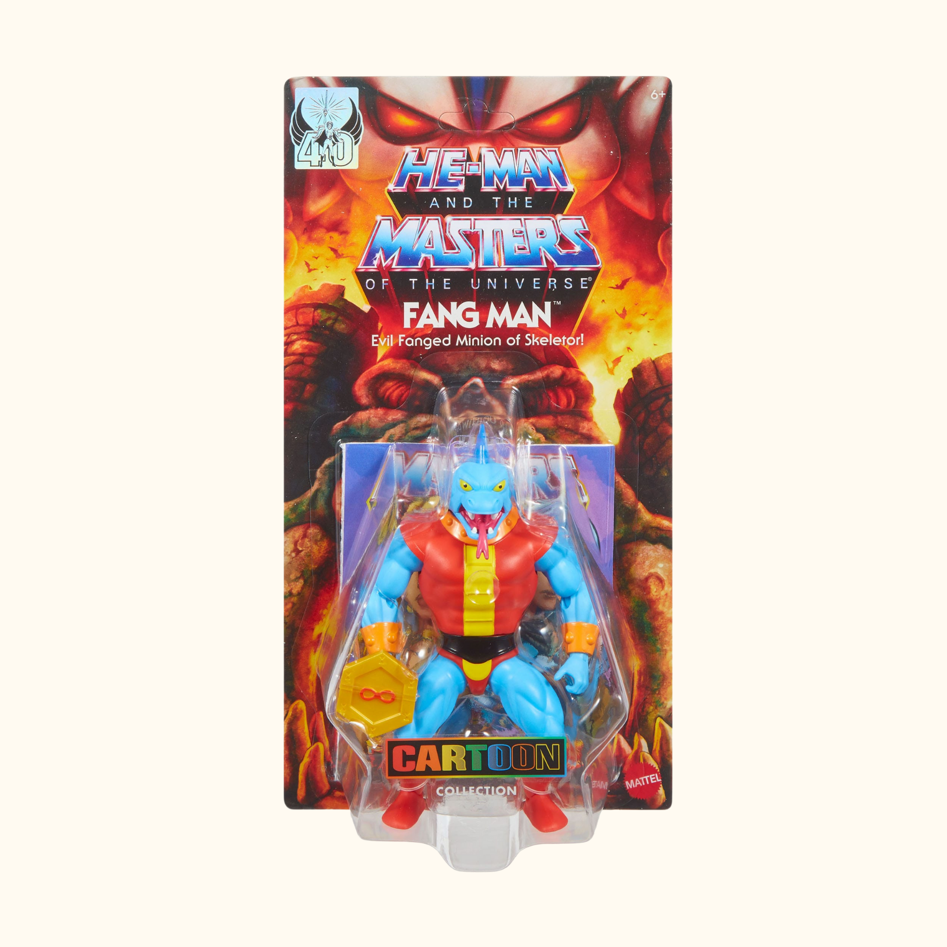 Fangman gehört zu den ungewöhnlichsten und gefährlichsten Schergen in Skeletors Diensten. Mit seiner schuppigen Haut, den gelben Reptilienaugen und der langen Zunge bringt er Angst und Schrecken in die Reiche von Eternia. In der Cartoon Collection der Masters of the Universe Origins erscheint Fangman in klassischem Look – inspiriert von seiner legendären Serienepisode. Die Figur ist voll beweglich und wird mit kultigem Zubehör geliefert, das ihn kampfbereit macht für die Schlacht um Castle Grayskull!